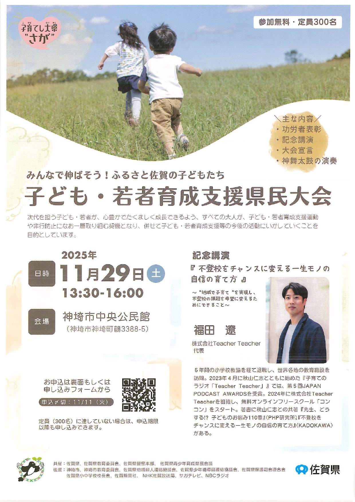 次代を担う子ども・若者が心豊かでたくましく成長できるよう、すべての大人が子ども・若者育成支援運動や非行防止に一層取り組む契機となることを願って、「子ども・若者育成支援県民大会」が開催されます。