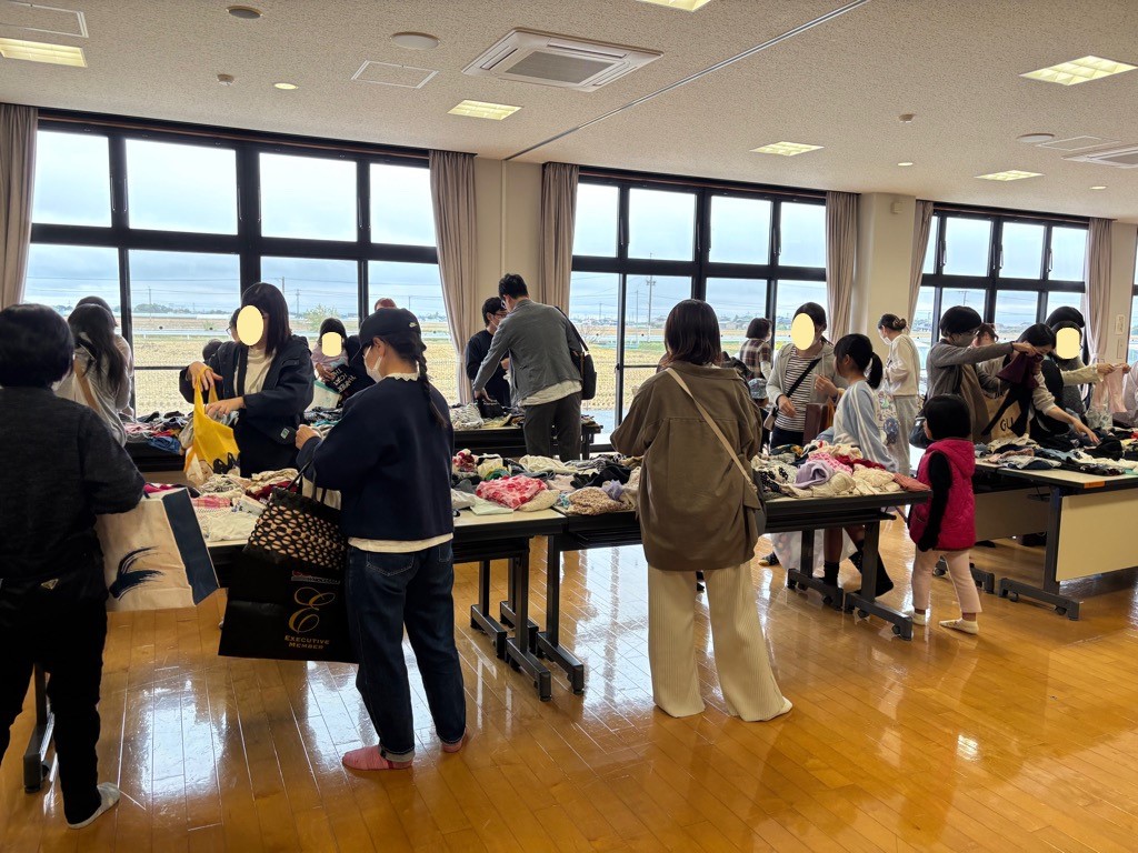 千代田町保健センターで神埼市母子保健推進協議会主催のおゆずり会が開催され、妊婦や親子連れなど多数の来場者でにぎわいました。おゆずり会は、家庭で使用しなくなった育児用品を提供いただき、必要な人にお譲りするものです。